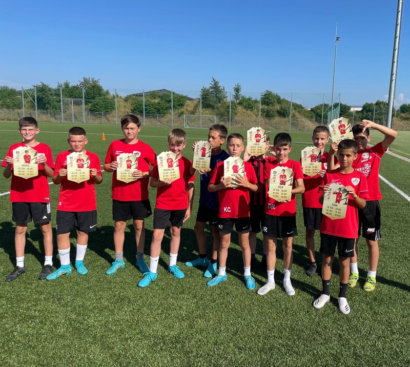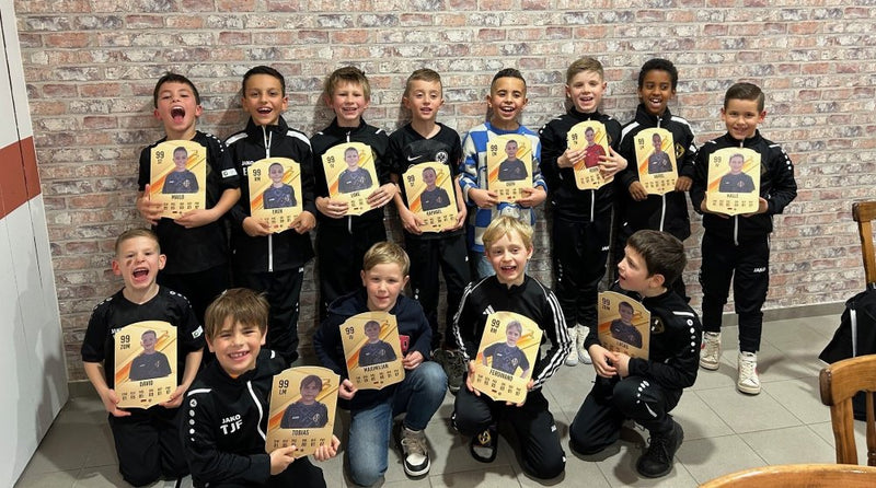 Mit unseren individuell gestaltbaren Futcards bekommt jeder Spieler seine eigene Sammelkarte – mit Foto, Name, Vereinsemblem und persönlichen Stats. Ob für die Kabine, die Abschlussfeier oder als Geschenk: So zeigt ihr, dass jeder in eurem Team zählt.